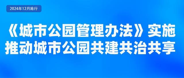 《城市公园管理办法》自2024年12月1日起施行。《办法》明确提出,鼓励单位和个人通过认种认养、捐资捐物等形式,依法参与城市公园的规划、建设、保护和管理工作,推动城市公园共建共治共享。《办法》对城市公园的无障碍设施建设提出了具体要求:城市公园应当按照无障碍设施工程建设标准,配套建设无障碍设施。既有城市公园不符合无障碍设施工程建设标准的,应当组织实施改造;不具备无障碍设施改造条件的,应当依法采取必要的替代性措施。《办法》对开展城市公园绿地开放共享工作明确了要求:城市公园管理单位应当公布草坪和林下空间的开放时间、范围等信息。《办法》明确,严禁在城市公园中以自建、租赁、承包、转让、出借、抵押、买断、合资、合作等形式设立私人会所。