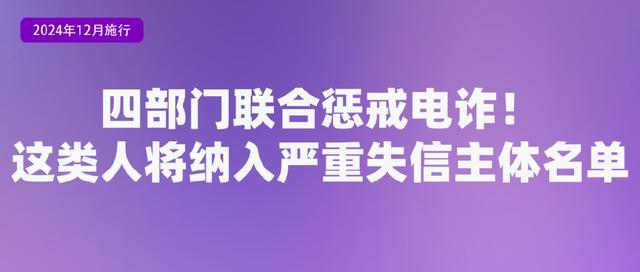 日前,公安部会同国家发展和改革委员会、工业和信息化部、中国人民银行联合发布《电信网络诈骗及其关联违法犯罪联合惩戒办法》,自2024年12月1日起施行。《办法》提出,要将实施电信网络诈骗及其关联犯罪被追究刑事责任的,纳入“电信网络诈骗”严重失信主体名单。惩戒措施包括金融惩戒、电信网络惩戒、信用惩戒,具体包括停止惩戒对象名下支付账户业务,不得为惩戒对象开立新的电话卡,将有关惩戒对象信息纳入金融信用信息基础数据库等。